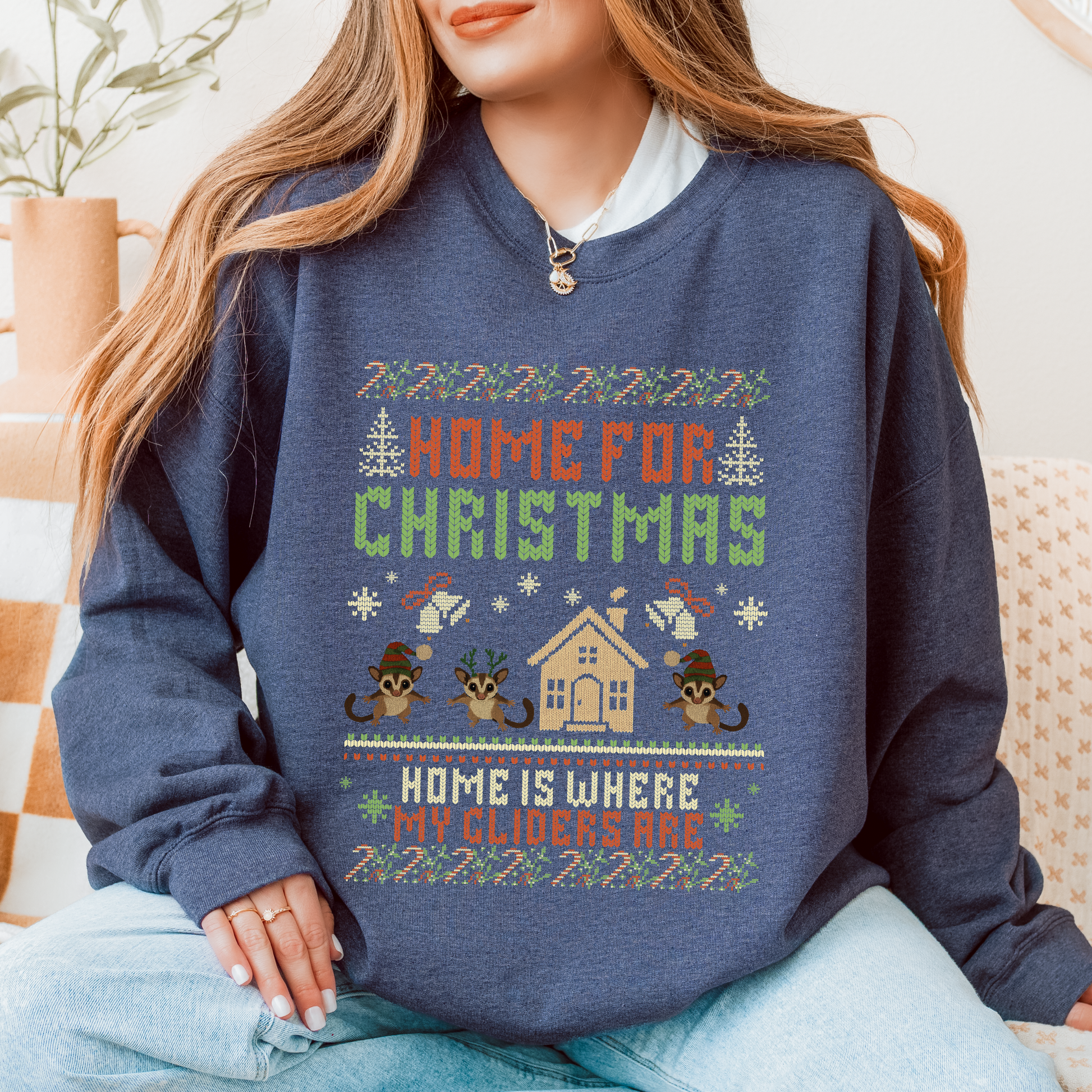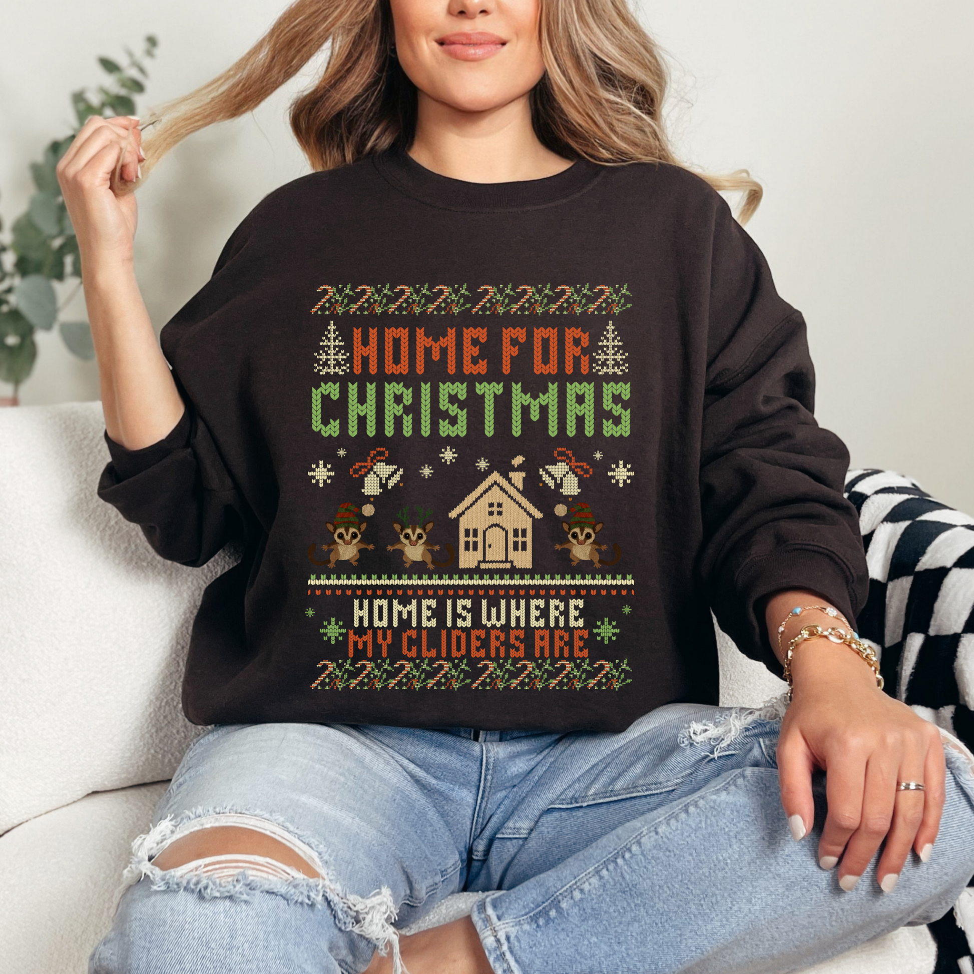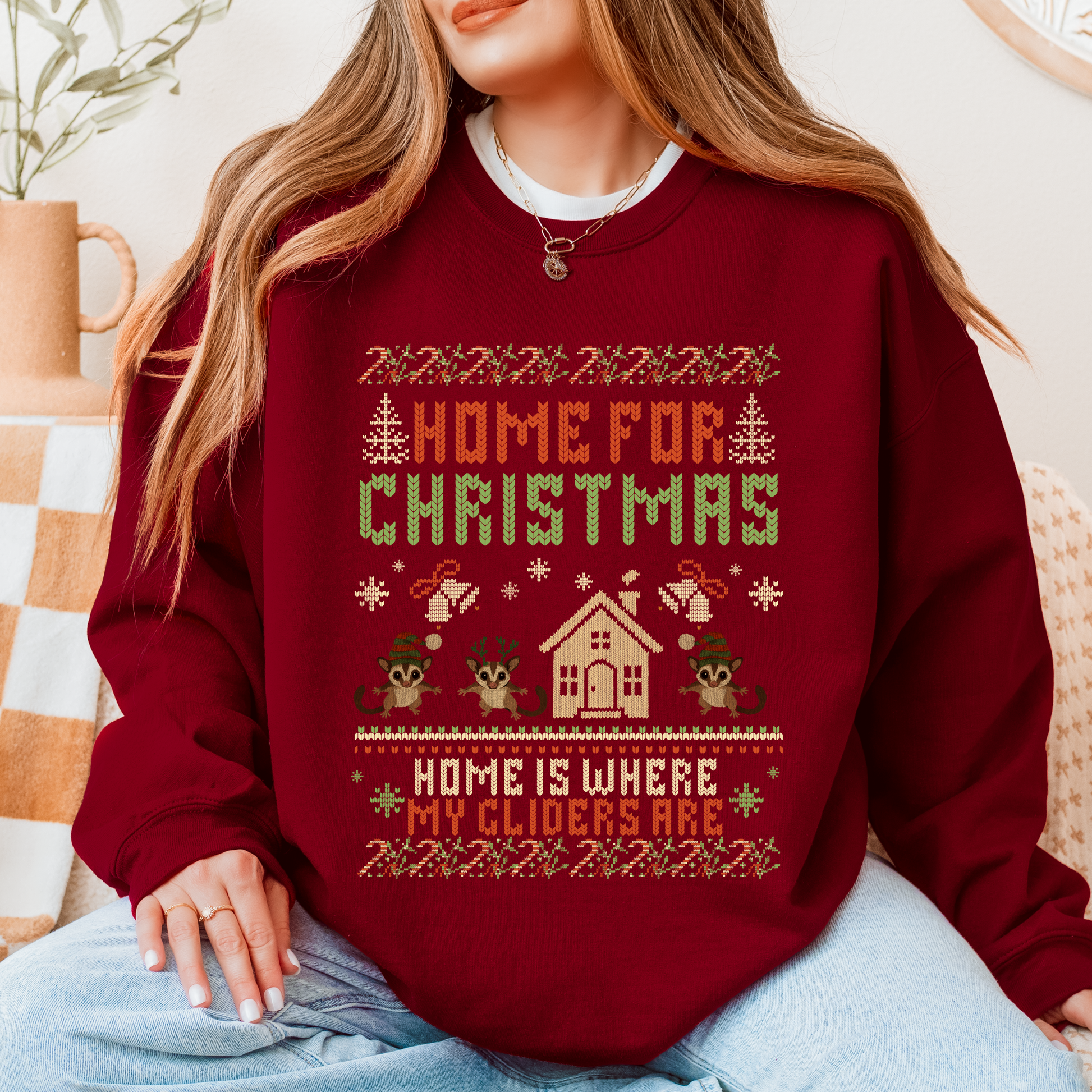 Cozy, heartfelt, and full of glider love—this festive faux-knit “Home for Christmas” sweater brings all the warm holiday feels. Featuring charming stitched-style Christmas motifs, and adorable sugar gliders, it captures the magic of spending the holidays at home. The finishing touch? A sweet nod every glider parent understands: “Home is where my gliders are.”