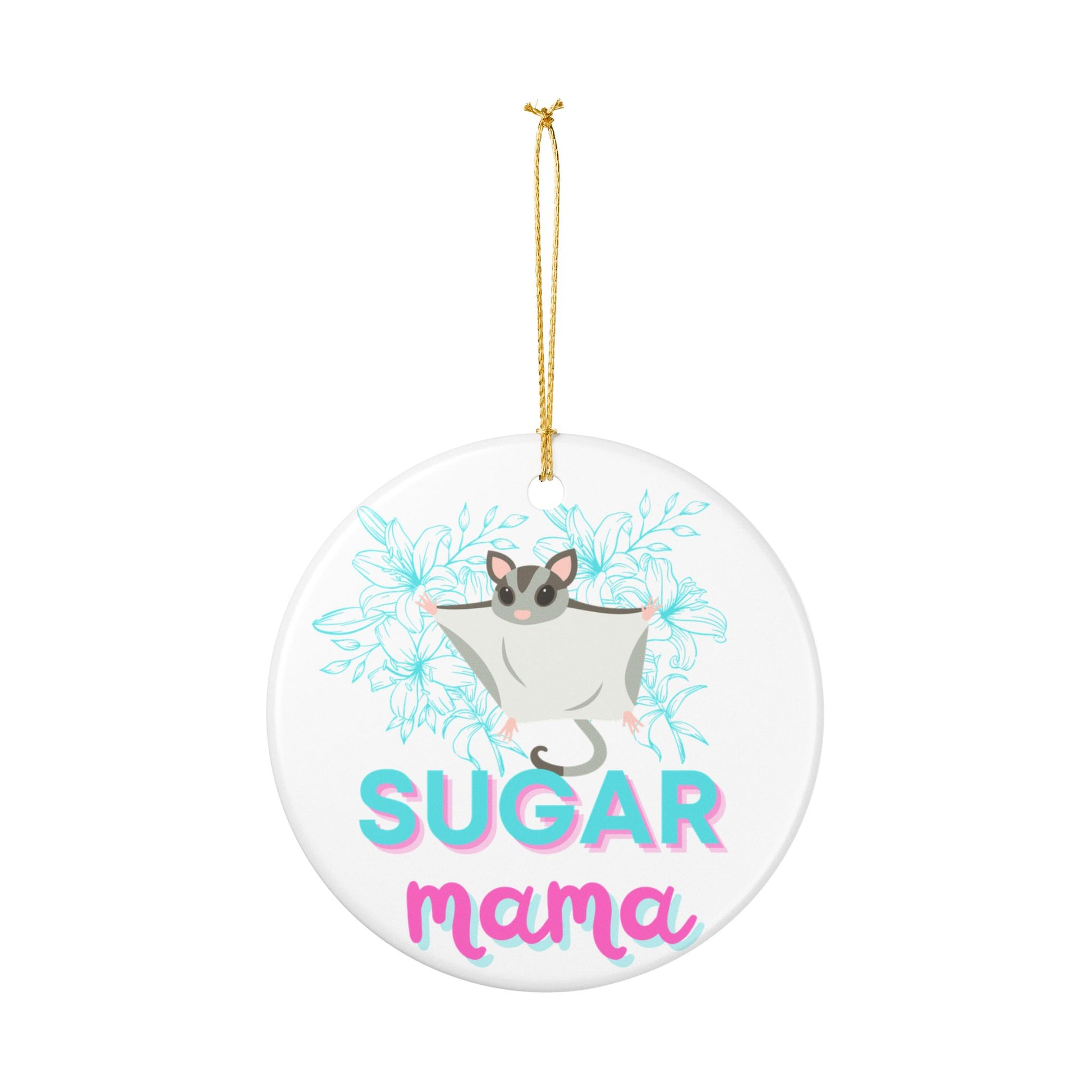Celebrate the sweet side of glider love with this adorable ceramic ornament featuring “Sugar Mama” in vibrant, fun lettering alongside a cute sugar glider. Perfect for proud sugar mamas (or gift-givers) looking to add a splash of color and charm to their holiday décor.